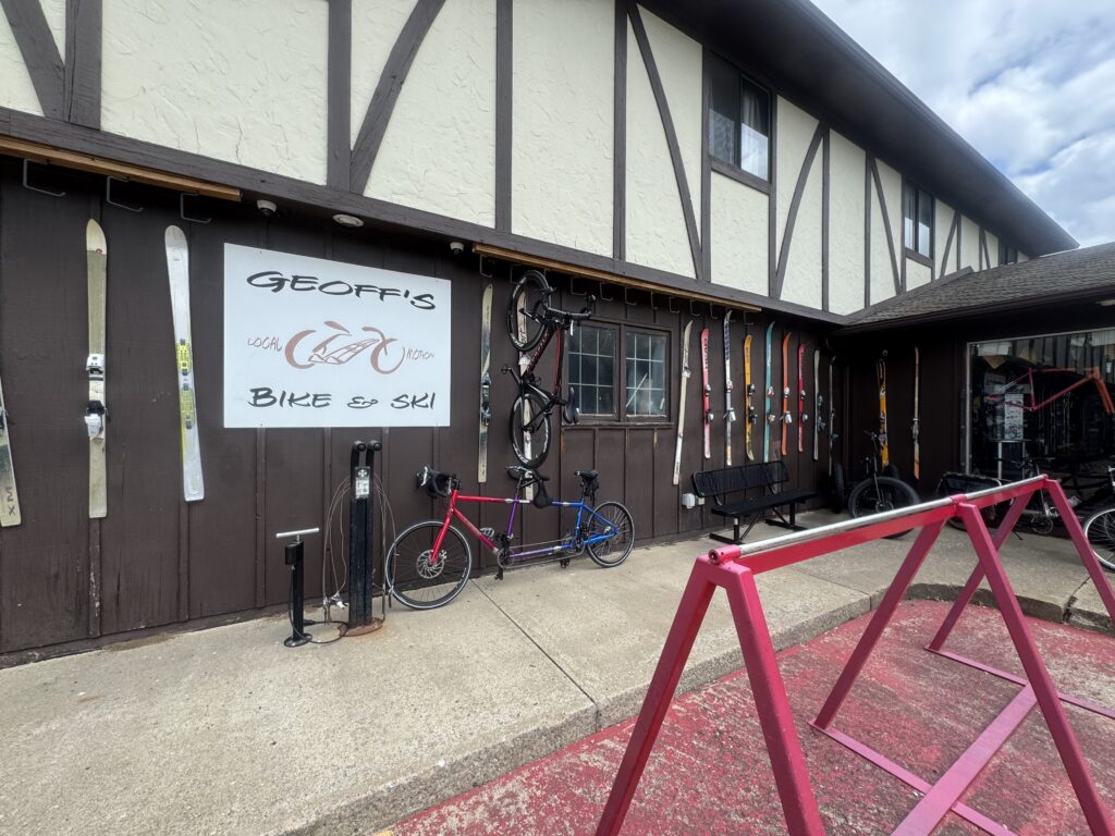 I had already entered Google Maps directions for a bike shop in Iowa City, but my dad called back with the address of the same shop. Once I made it to Geoff’s Bike Shop, I borrowed a floor pump, and the tire was down to 10 psi. Even though it was super busy, the friendly mechanic quickly took my tire off, saw that it still had plenty of sealant, pumped the tire back up, and said I should be good to go … no charge … and the tire held the remaining 1000 miles of the trip. I still don’t know why/how the tire could have gotten so low over the span of a day without me seeing any sealant leaking. I expect it has something to do with a slow leak that opened up each time I was hitting the ice cracks on the bike trails and roads.